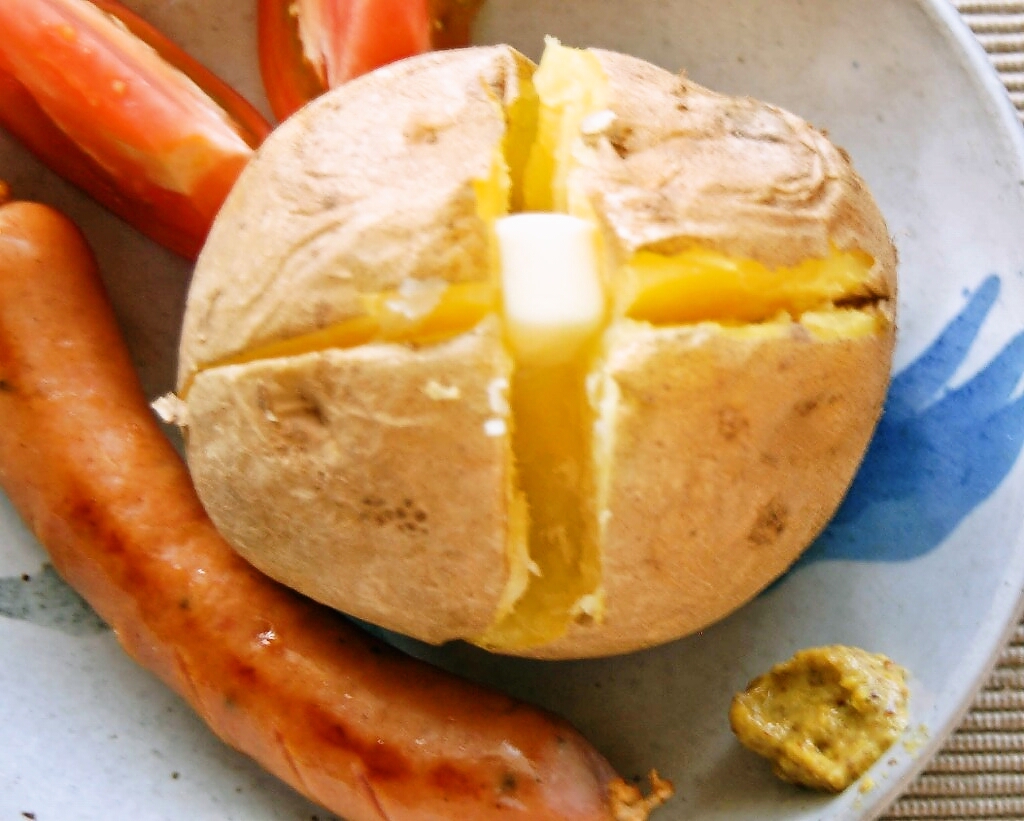 十字に切れ目を入れて、そこにバターを投入、粒コショーをかけたり、ウインナーがあればフライパンで炒めて、粒マスタードを添えます。2010年12月11日掲載